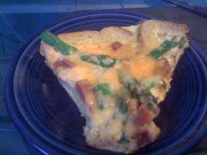 We got home and John got busy making the WW Asparagus, Bacon and Cheese Strata I had requested, plus a WW fresh strawberry pie for later that evening. The strada was so good,  I had a piece for lunch, too.